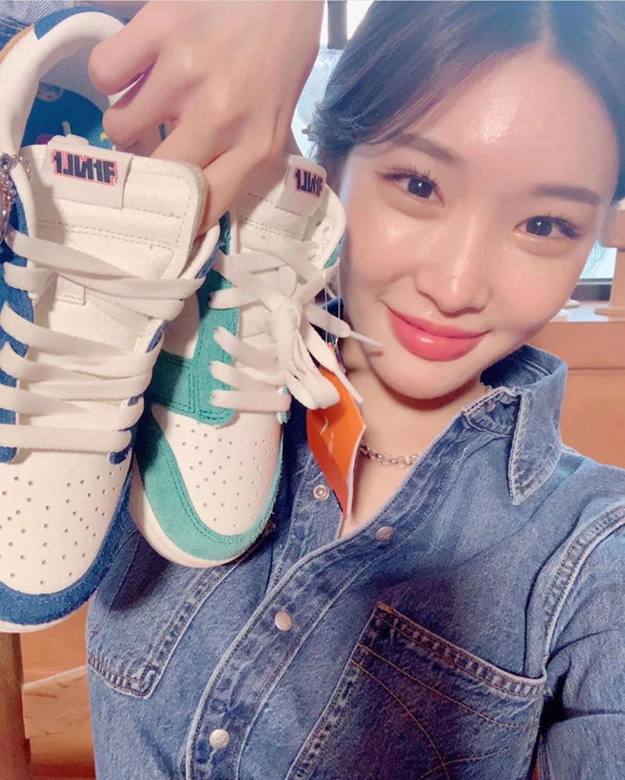 性感女神朴孝敏近期多次上脚联名球鞋,近日她穿了未发售的釜山行 Kasina x Nike Dunk Low。