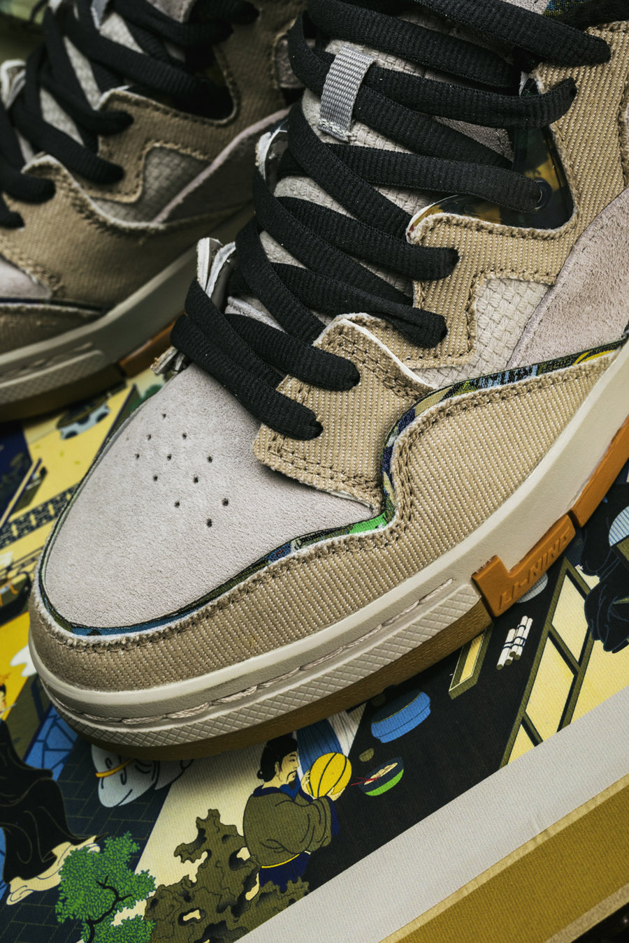 从画卷和扇子就能看出,此次是以古代画作为主题,但将篮球、说唱等街头潮流元素融入其中。