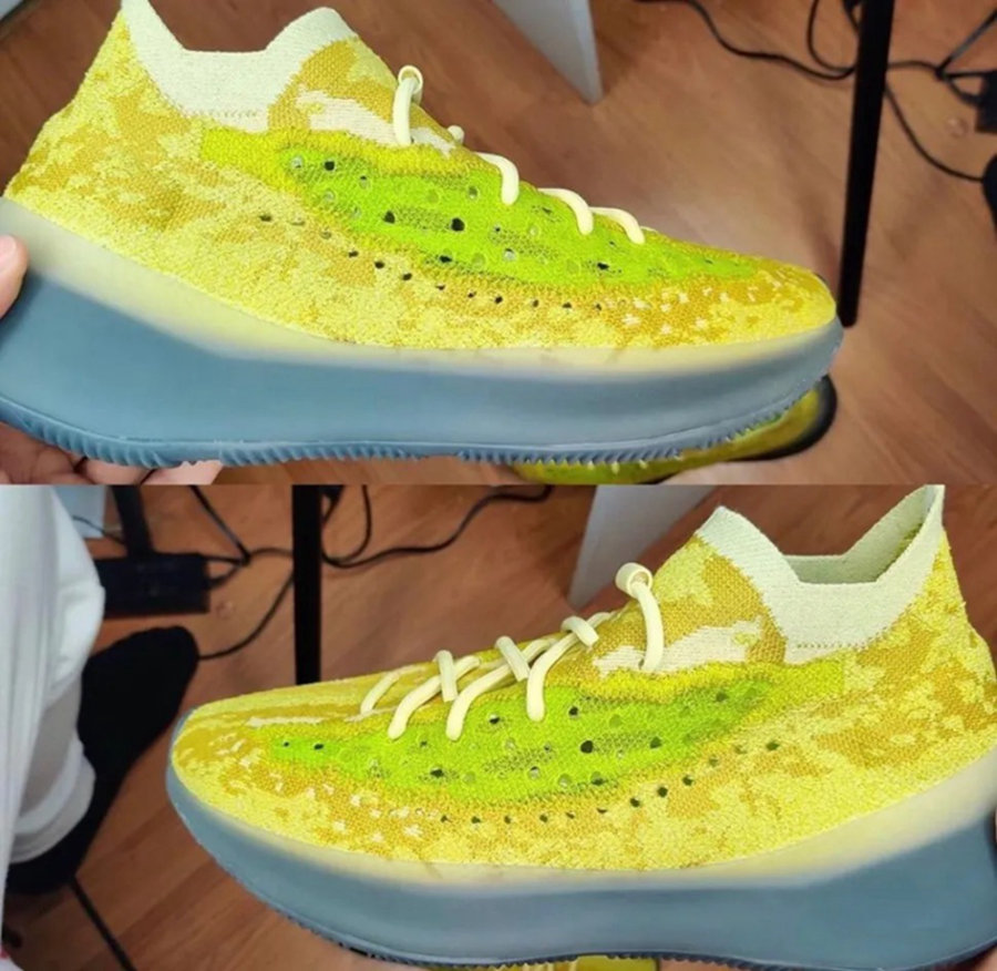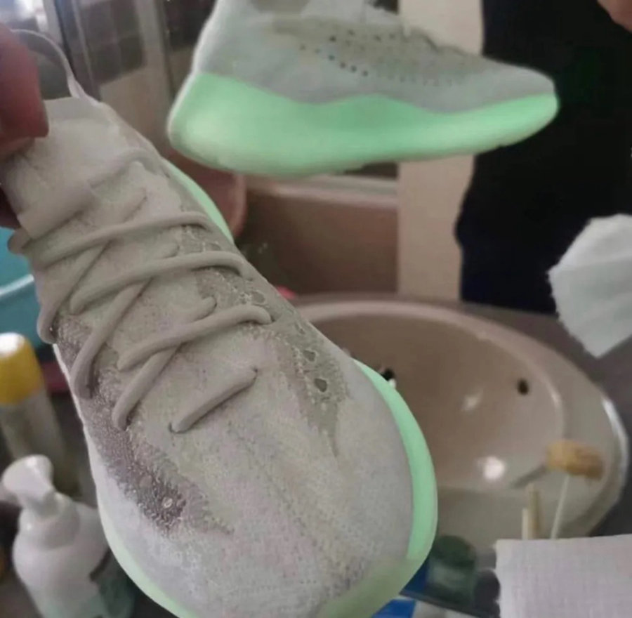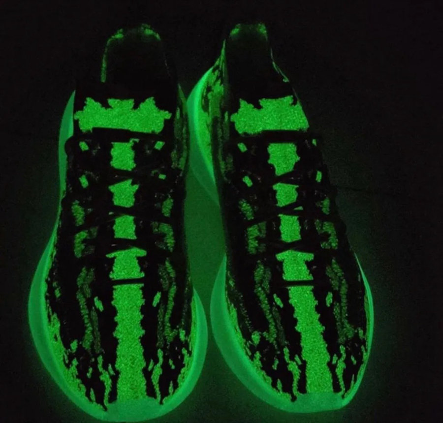 目前实物已经曝光,可以看出夜光效果相较于之前 Yeezy Boost 350 V2 的夜光版本更加骚气。