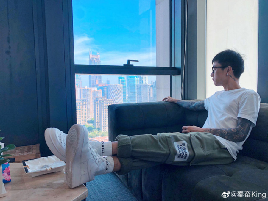 不过最近秦奋倒是经常上脚纯白 Air Force 1,看起来是打算体验一下普通人的生活?