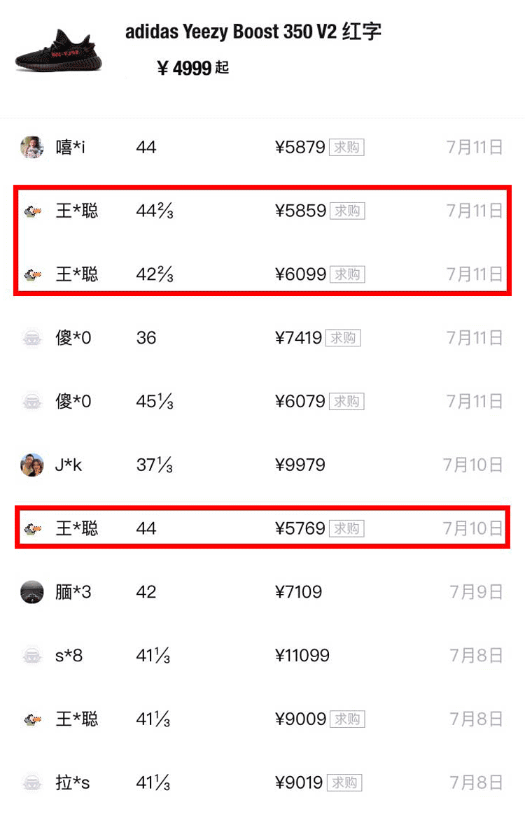 为此小编还特意去看了看某 App 球鞋账号,发现就在今年 7 月份接连入手了 5 双 红字 Yeezy Boost 350 V2。