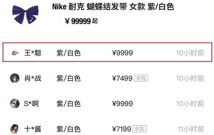 发售价 ¥169 元的 Nike 紫色蝴蝶结,也是随手花一万元购入...