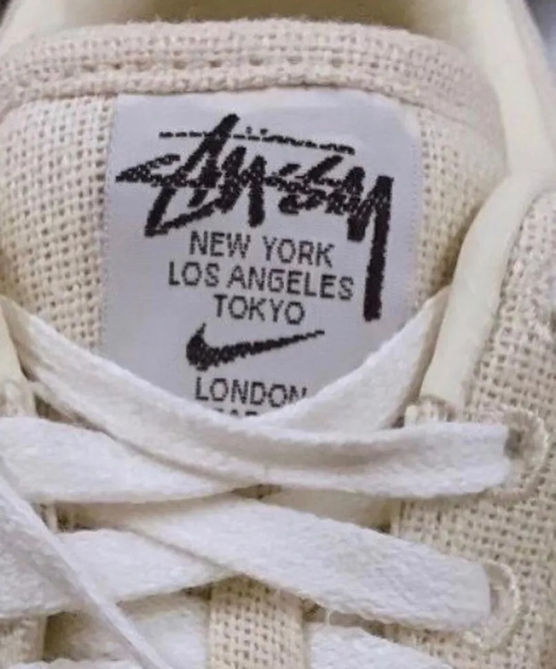 侧身双刺绣拼成 Swoosh Logo,Stüssy Logo 在后跟点缀。