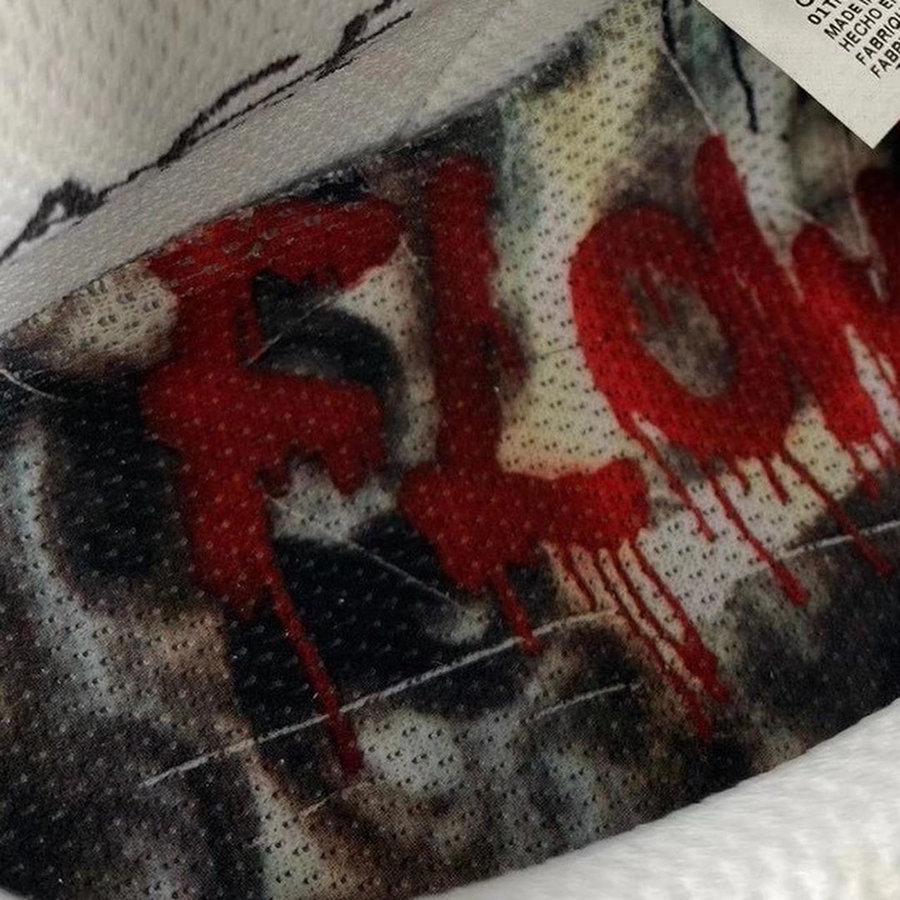 标志性鞋舌雏菊、加宽鞋带、鞋身 Swoosh Logo 和中底的黑色做旧涂鸦条,均改为黑色。
