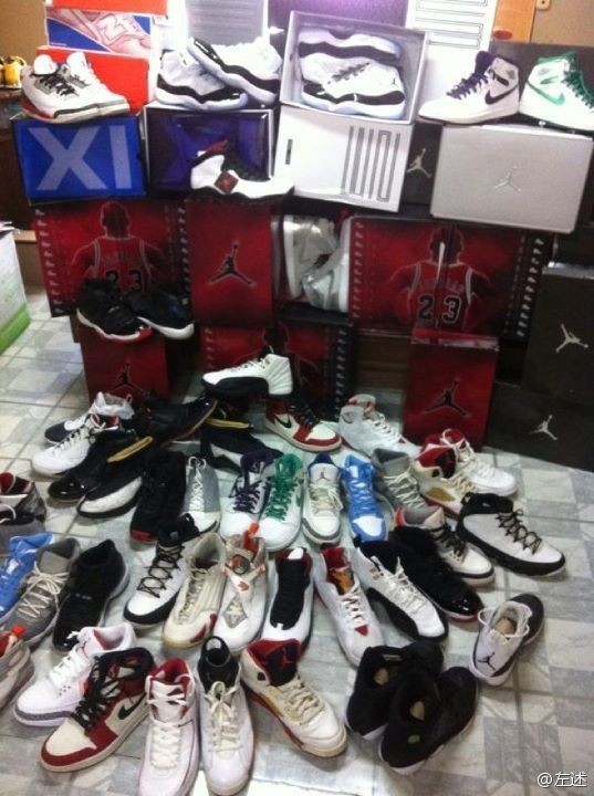 二十多年前就开始分享自己的球鞋收藏,一种鞋型亮出几十双。