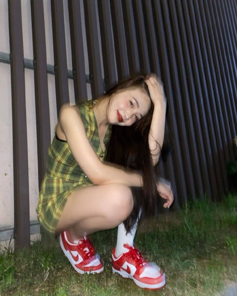 以 Cute & Sexy 风格而受粉丝喜爱的 Joy 近期也常穿球鞋,尝试起不同风格。