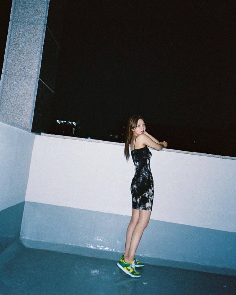 近期,「球鞋女神」朴山多拉依旧没让大家失望,再次提前上脚柠檬水洗 Nike Dunk Low 和一双 Nike 的全新鞋型!