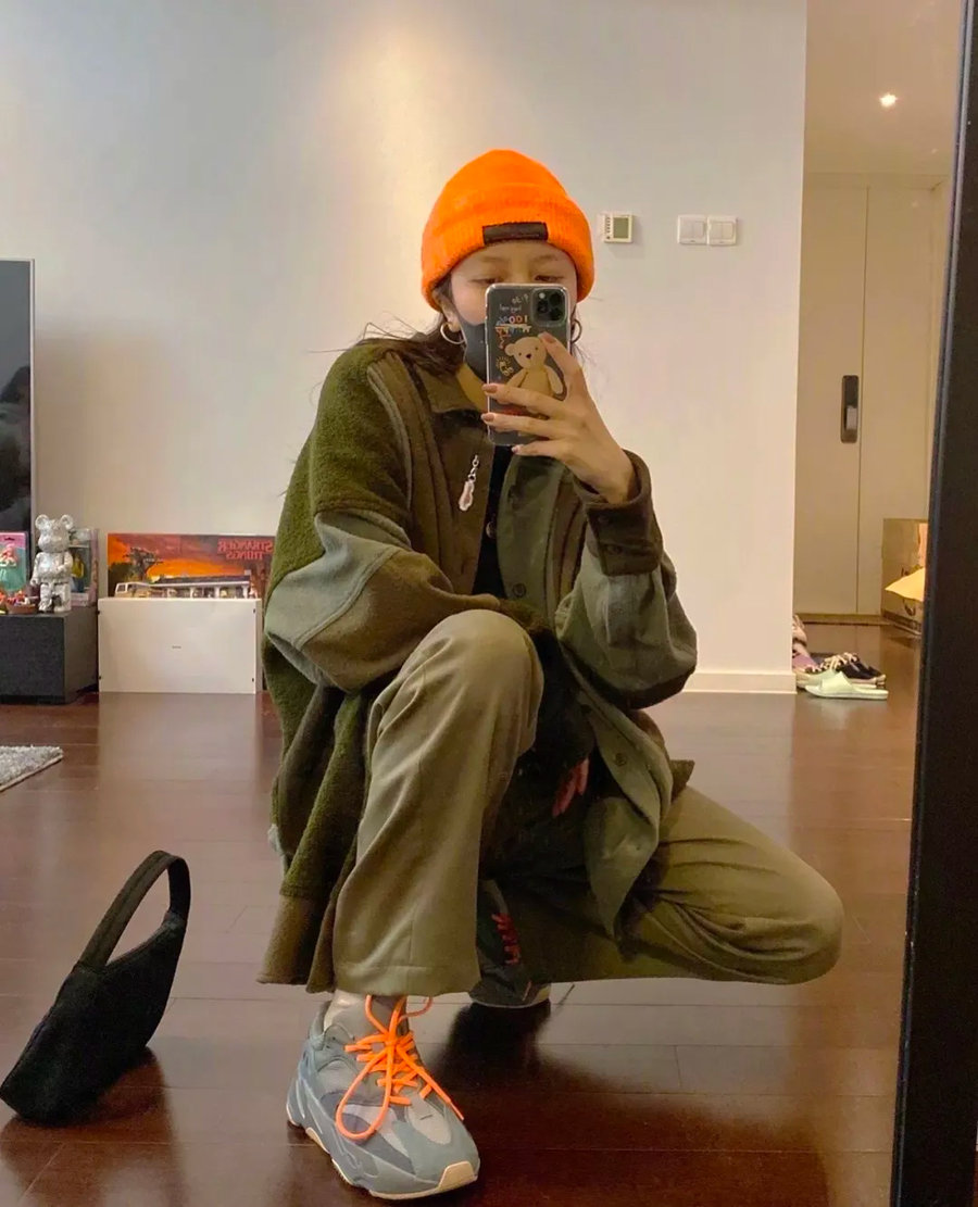 ▼ 可盐可甜的街头运动风,脚下 Yeezy Boost 700 OG 呼应整身色调风格