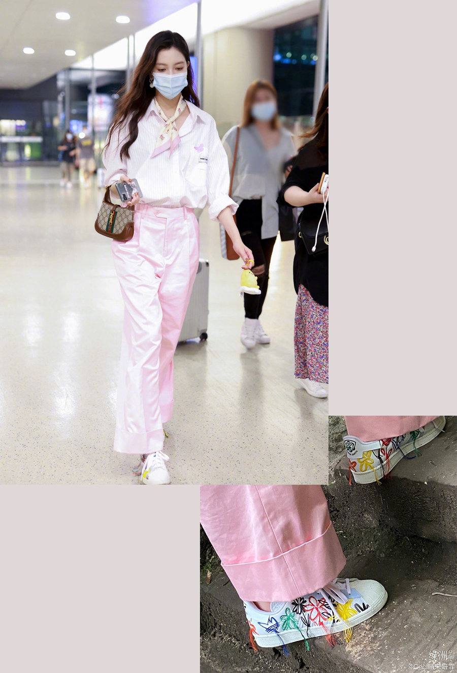 宋妍霏特别喜欢 adidas Originals 系列的各种复古鞋款,在她的各种自拍、街拍、机场照中都看到她上脚。