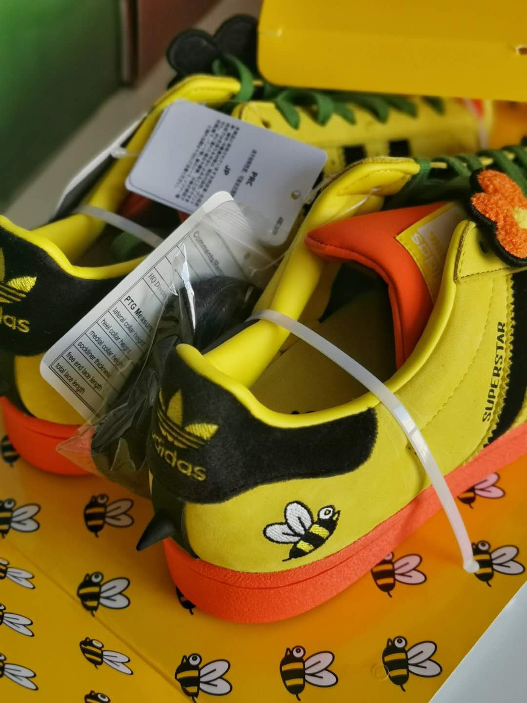 小蜜蜂 Superstar 则是麂皮鞋面,内衬也是皮革材质,颇具规格。