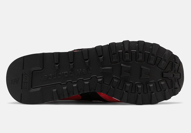 鞋身黑色侧面搭配红色 N 字 Logo。