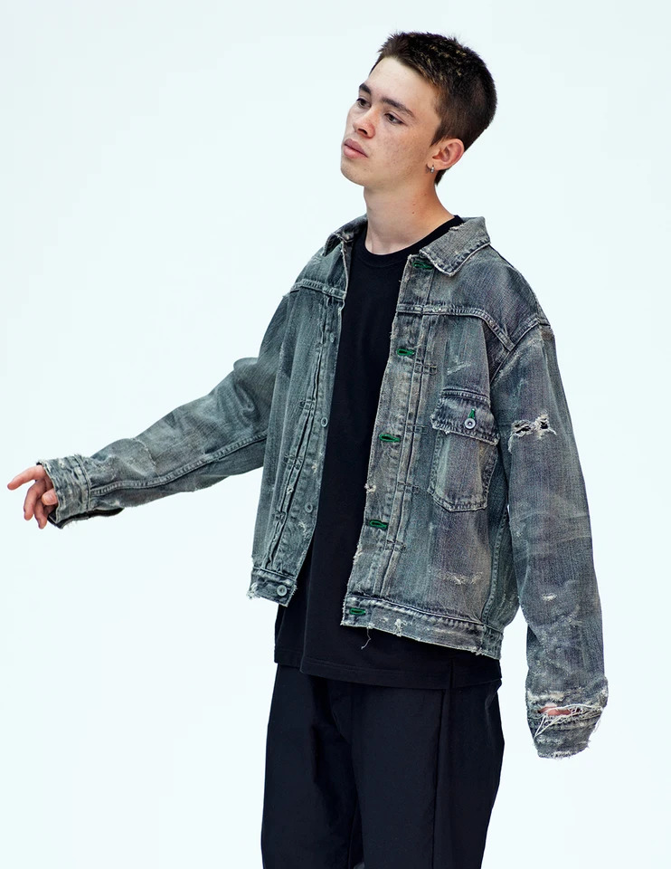 NEIGHBORHOOD 品牌标志的破坏加工与水洗工艺同样出现在诸多丹宁系列产品之上,值得一提的是一款致敬藤原浩早年穿着的复古牛仔外套,在肩头、袖口及手臂的不同位置制造破烂效果,加上全身洗水做旧,是全季丹宁系列产品的亮点。