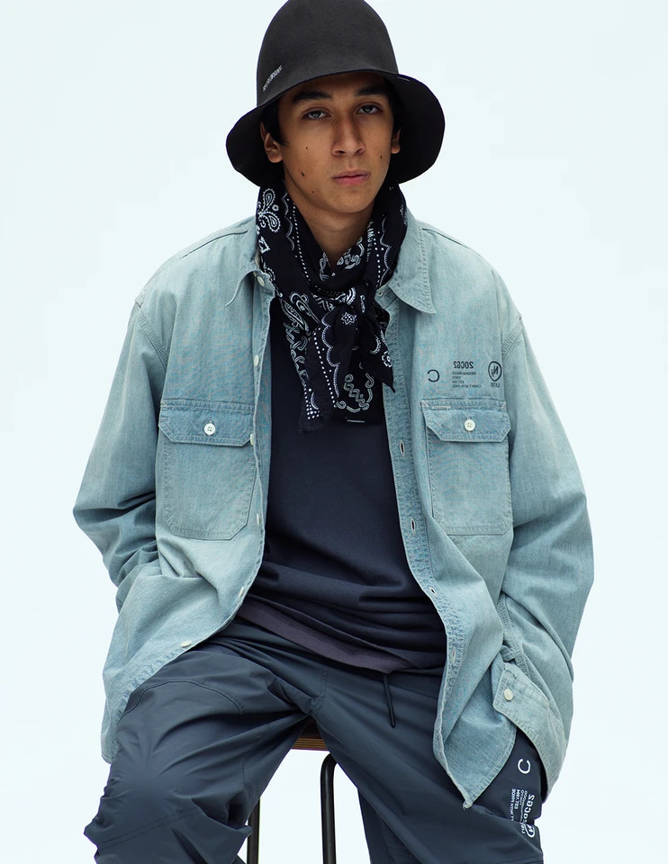 在丹宁方面,参照了 80 年代极具代表性的酸洗丹宁样式进行再创作,推出各式外套与裤装,立领及侧口袋的设计细节别具复古特色。