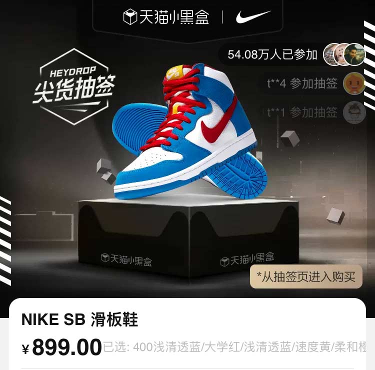 目前这款 Nike SB Dunk High “Doraemon” 已正式登陆 Nike 天猫旗舰店并将于 9 月 19 日本周六上午 9 点于正式发售,定价 ¥899 元。