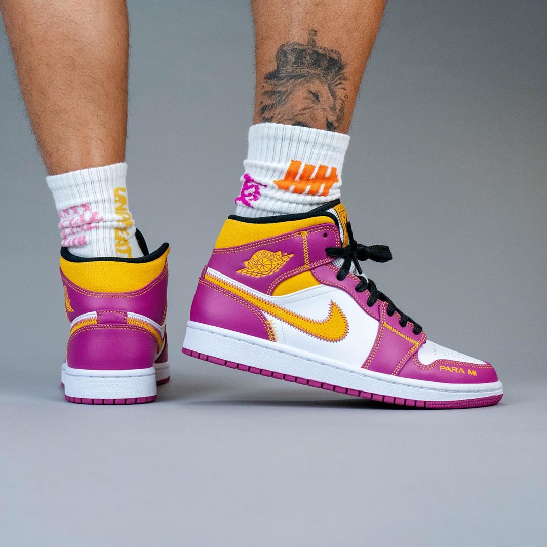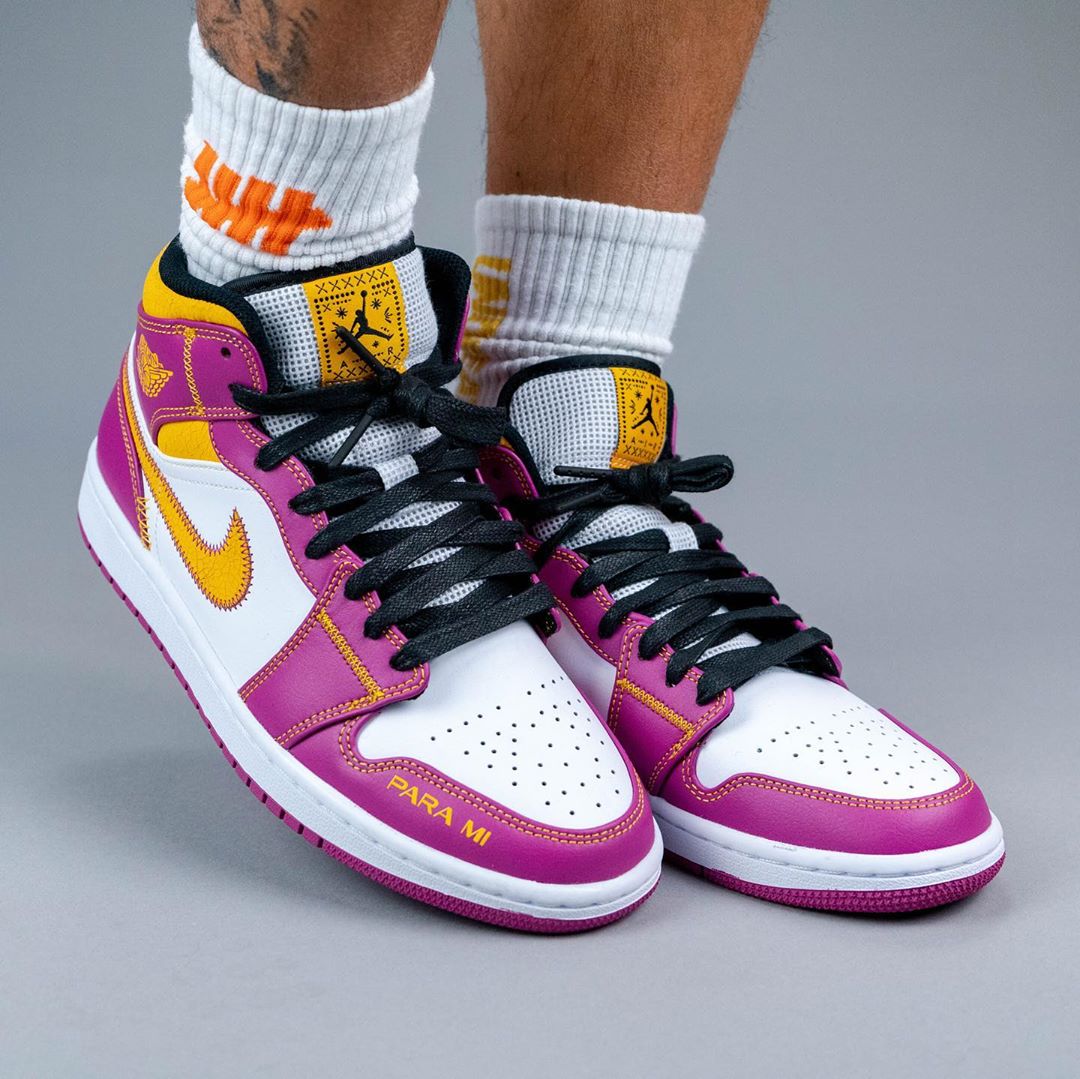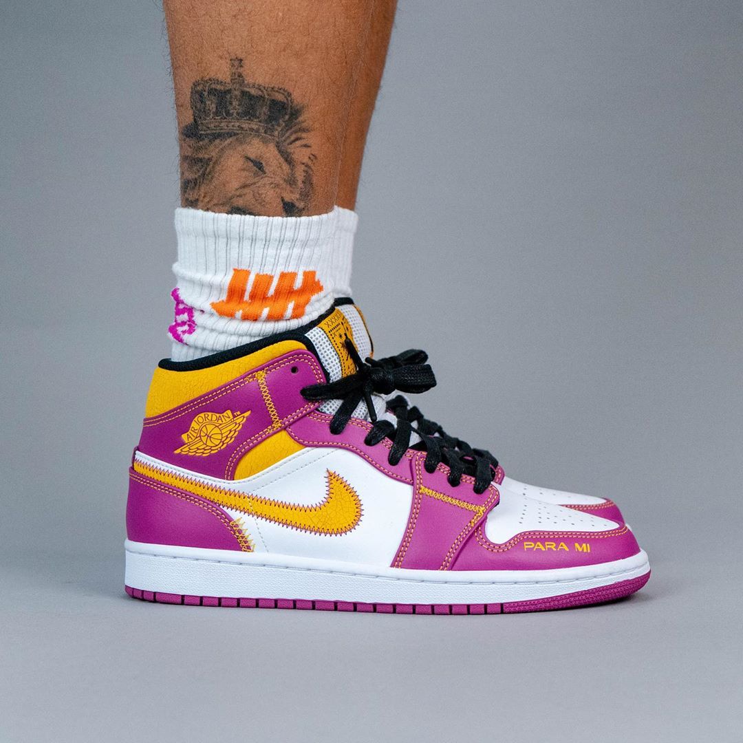 近日,海外球鞋曝料账号 yankeekicks 曝光了一款全新配色 Air Jordan 1 Mid "para mi familia",辨识度特别高!