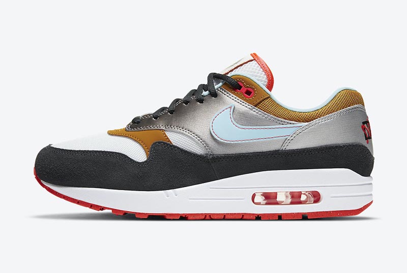 眼前这款即将发售的 Air Max 1 新品,鞋身采用沉稳干练的黑白装扮构建鞋身,辅以银色金属质感点缀鞋侧。浅蓝色 Swoosh 与红、褐色完善整体设计,丰富视觉层次。