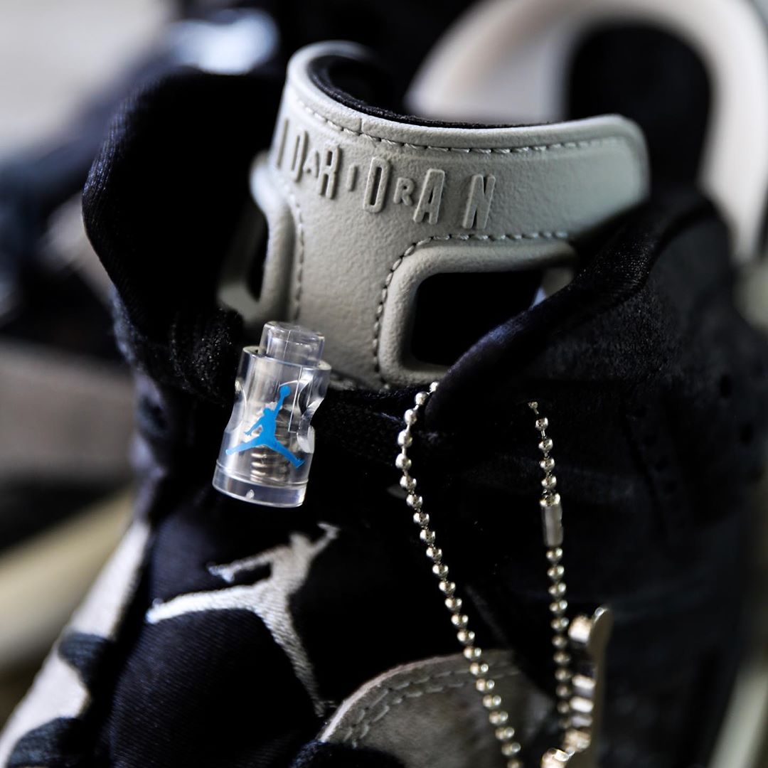 Air Jordan 6 标志性的弹性鞋带扣也采用透明设计,可以看到内部的弹簧结构。