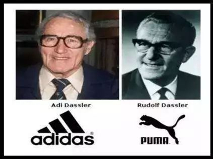 adidas 和 PUMA 的创始人分别是阿道夫·阿迪·达斯勒(Adolf Adi Dassler)和鲁道夫·达斯勒(Rudolf Dassler),字面上就看得出这两个创始的亲戚关系吧...