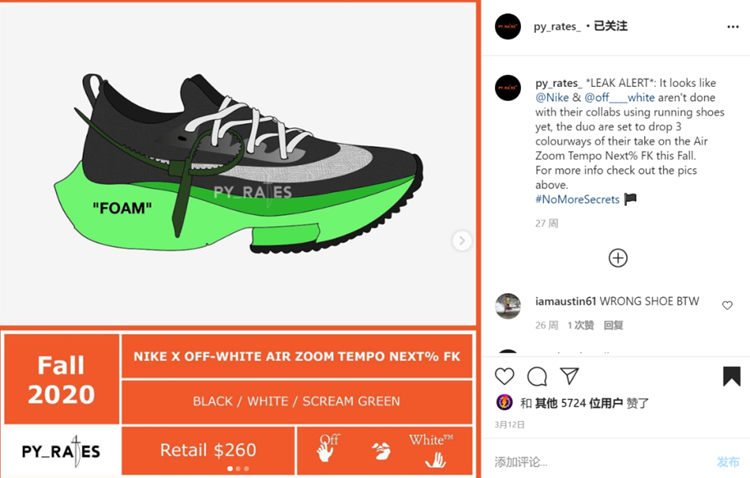 不过参考此前联名鞋款来看,这样的设计样式颇为中规中矩,太符合 OFF-WHITE 基础设计。
