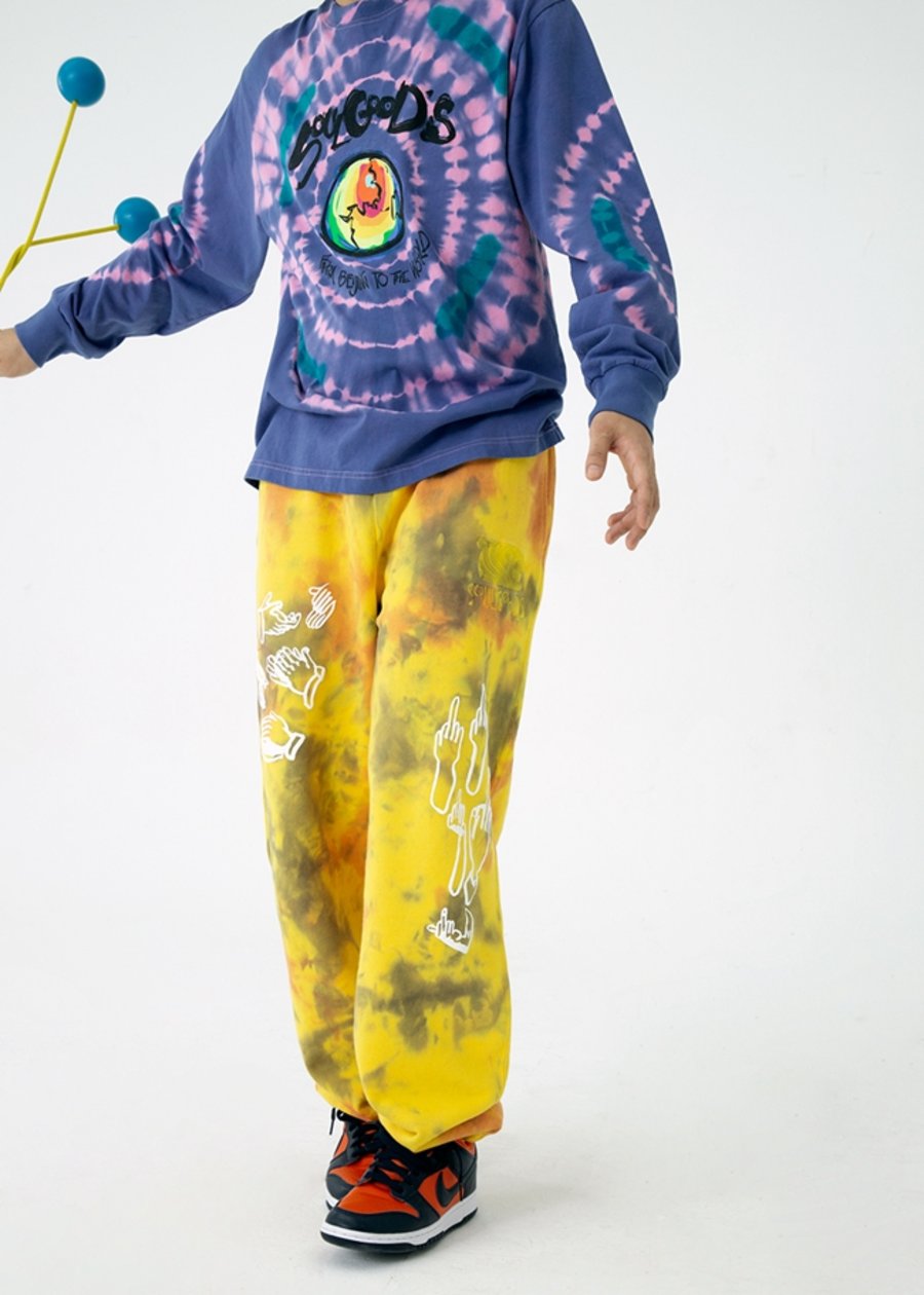 更通过手绘涂鸦字体与手工扎染工艺,将创作视角转向环保领域,传递共同维护环境的核心理念。