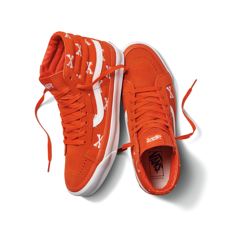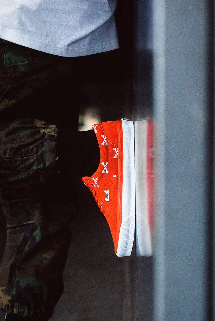 另外一款主题配色则是也高饱和度的橙色作为主调,这也是这一配色首次出现在 WTAPS x Vans「骨头」系列中。
