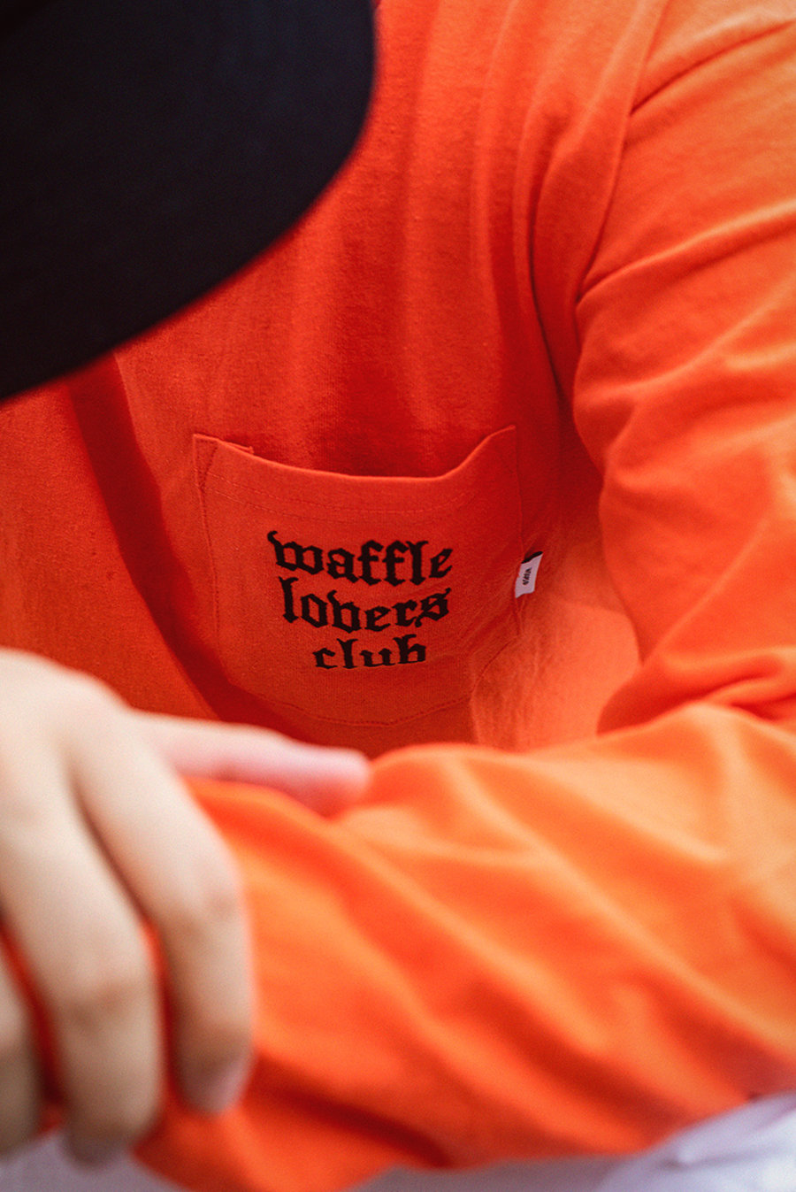作为内搭的长袖以及除了配色上相呼应之外,胸前口袋上还额外带有 Waffle Lovers Club 字样以及 WTAPS 的白色小标。