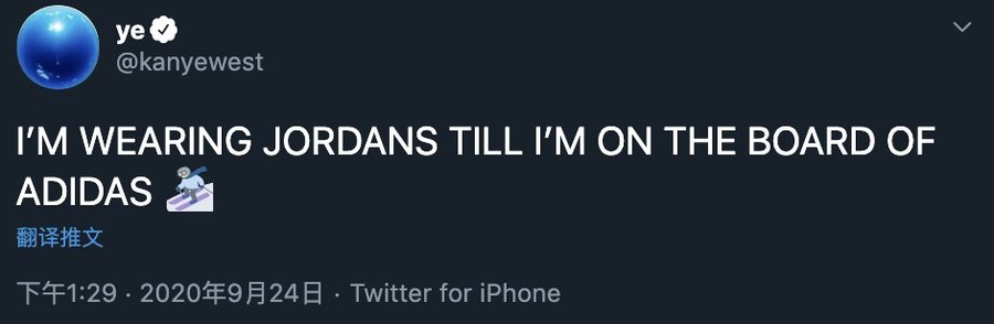 但侃爷没有,侃爷对 adidas 也不满了,就像曾经对 Nike 一样。