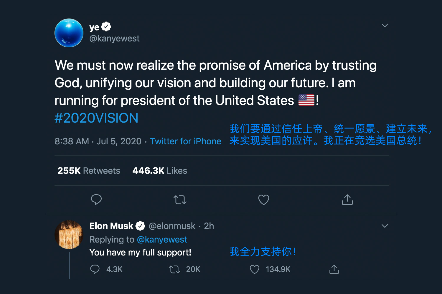 在评论中还有特斯拉老大 Elon Musk 的声援,网友们都觉得侃爷是认真的。