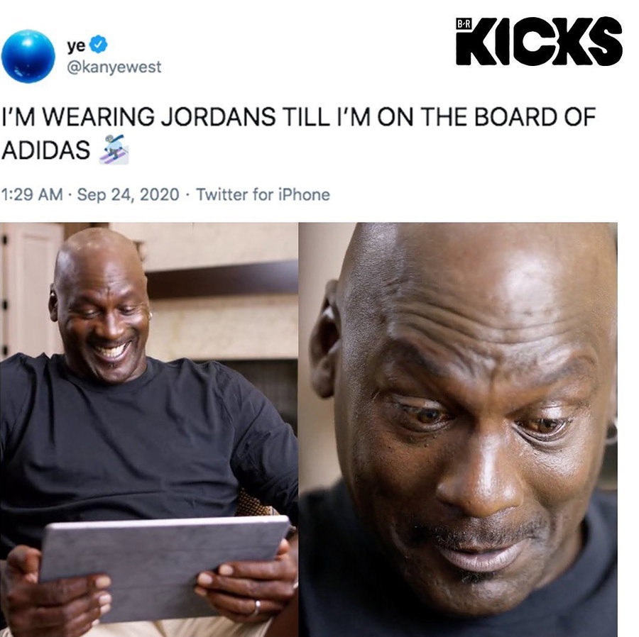 一方面是向 adidas 管理层施压,一方面可能真的是自己馋 Air Jordan 的新鞋了...
