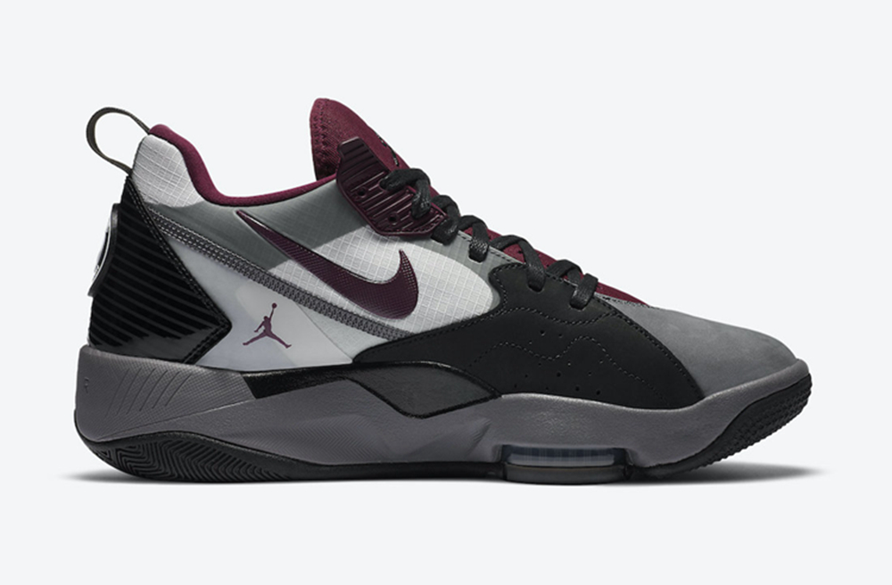 整双鞋以黑、灰、白、酒红多种颜色呈现,鞋身层次感十足。