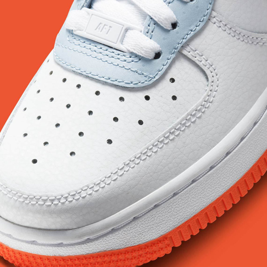 白色中底搭配上同样橙色外底, 完善整双鞋的设计。