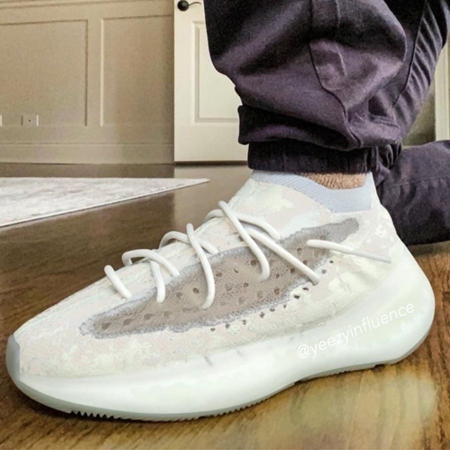 近日球鞋账号 @yeezyinfluence 晒出 Yeezy Boost 380 “Hylte Glow” 和 “Calcite Glow” 的上脚效果图,看得出来这次 adidas 依旧不走寻常路。