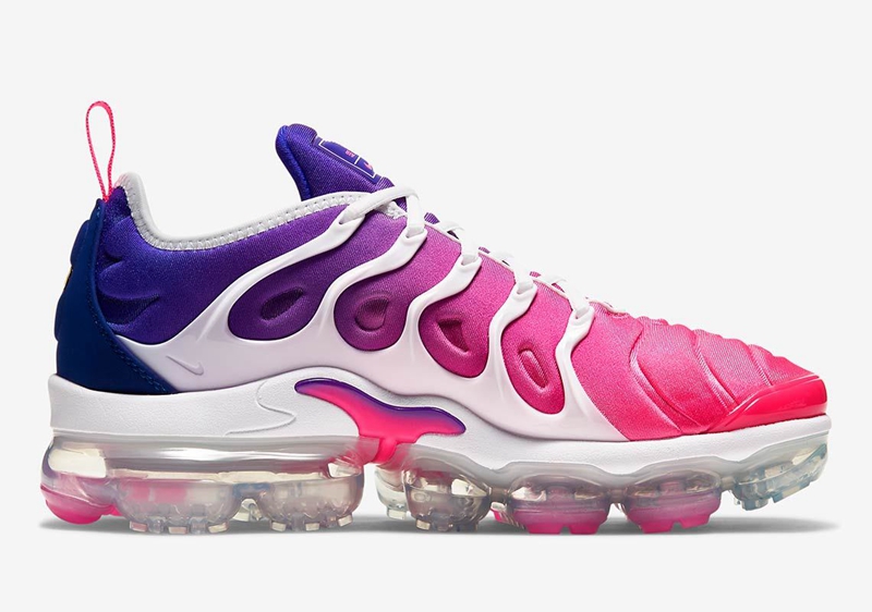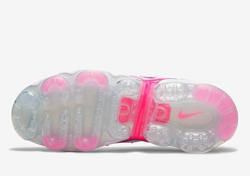 整双鞋采用粉色到紫色的渐变覆盖鞋身,吸睛效果十足。