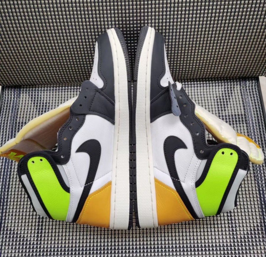 整双鞋在经典黑脚趾基础上,后跟加入黄色以及荧光黄色,配色十分抢眼。