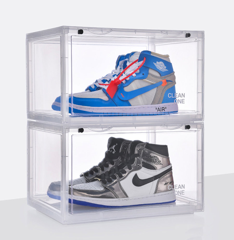 采用了与鞋盒相同的透明亚克力材质打造,延续了超高透明度,展示效果满分。