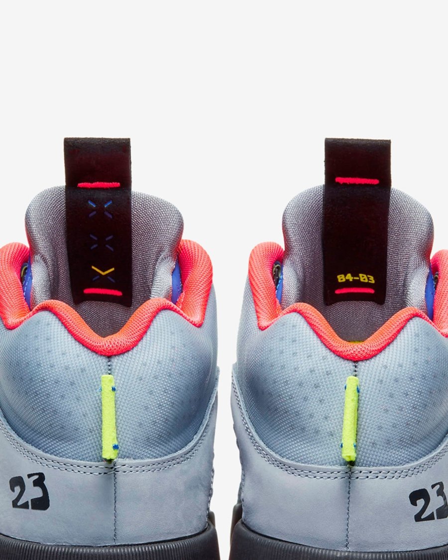 恰逢 Air Jordan 5 的 30 周年纪念,鞋舌与鞋帮样式致敬了 Air Jordan 5 的经典设计。