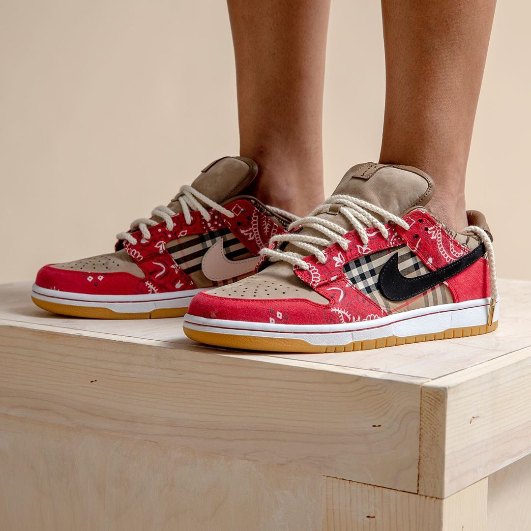 正是目前市场价突破万元的 Travis Scott x Nike SB Dunk Low!