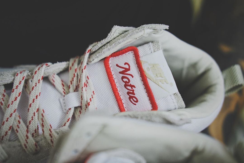 特别之处在于鞋舌位置,采用 Notre 刺绣 Logo 替换原有 Nike Swoosh 标签,彰显专属的联名身份。