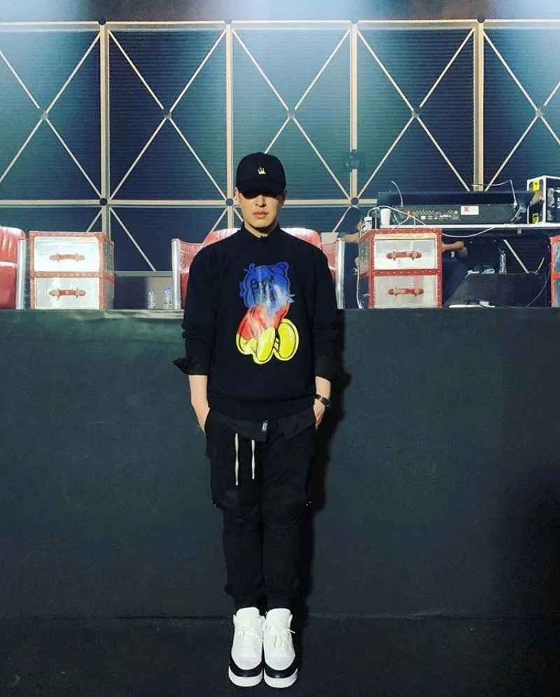 在节目中身穿 「8 & 24」,与脚下藤原浩 Fragment Design x Air Jordan 3 搭配非常醒目,帅!