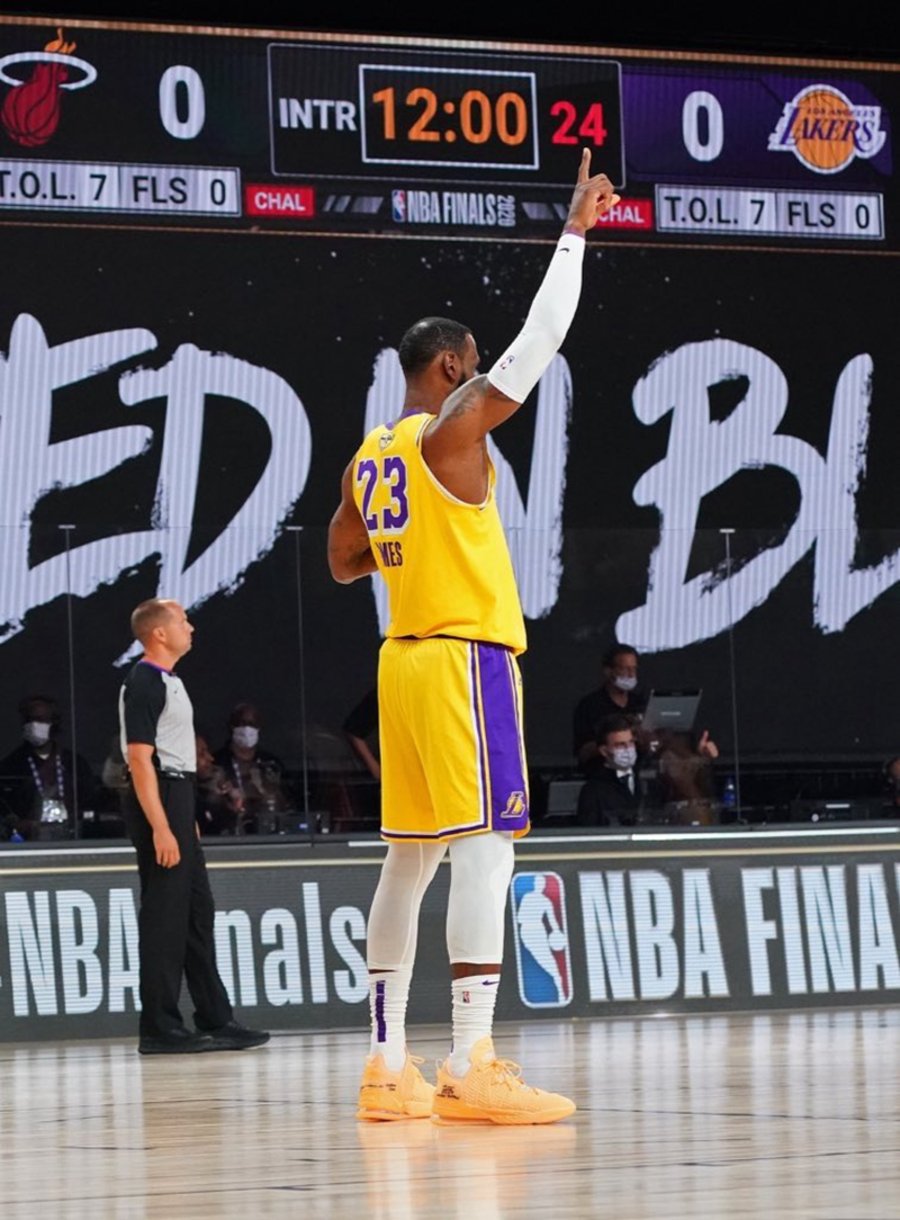 在整个系列赛中,詹姆斯先后上脚 Nike LeBron 7 与 Nike LeBron 17 出战,却令人意外冷落了自己最新战靴,而在今日比赛中,詹姆斯终于上脚。