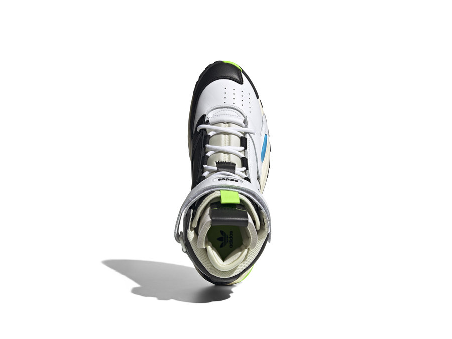 Streetball Forum 将 1984 Forum 的元素与 adidas Streetball 鞋款混搭,Forum 的鞋面融合 Streetball 的鞋底和鞋带结构,脚踝处标志性绑带设计提升辨识。