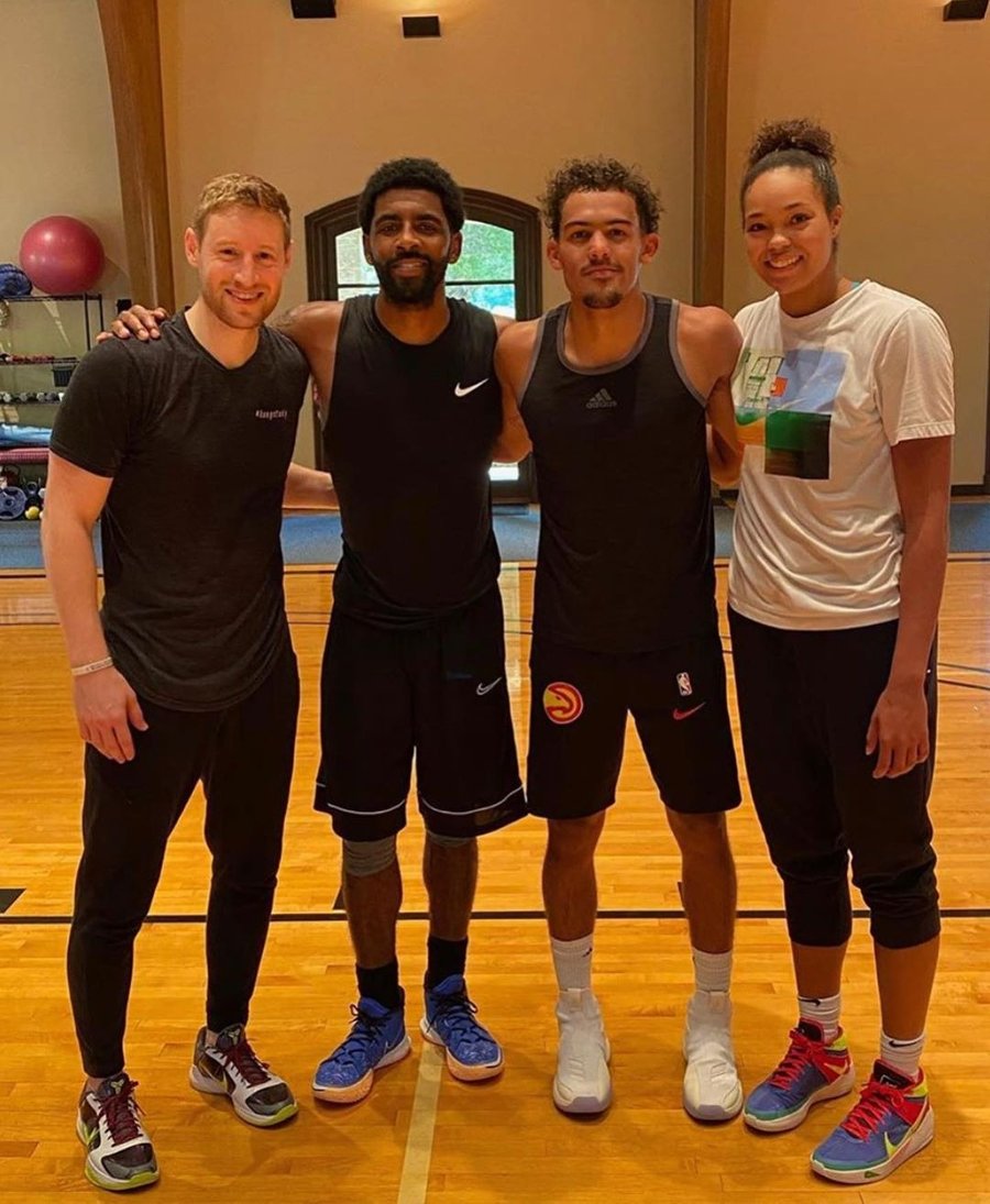 今天,欧文在与特雷·杨合影中,上脚了一双全新球鞋,从设计来看很可能就是最新一代 Kyrie 7!
