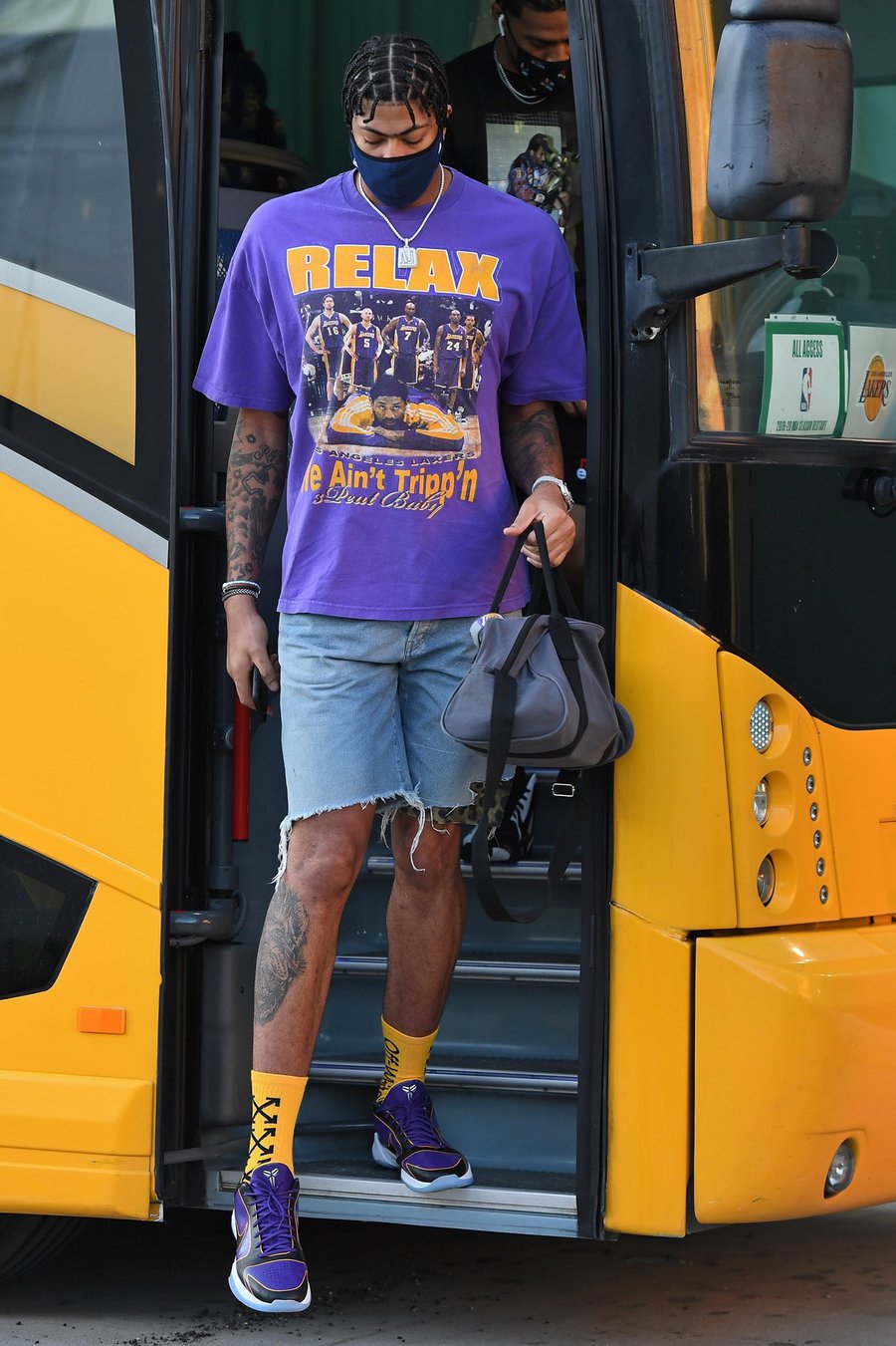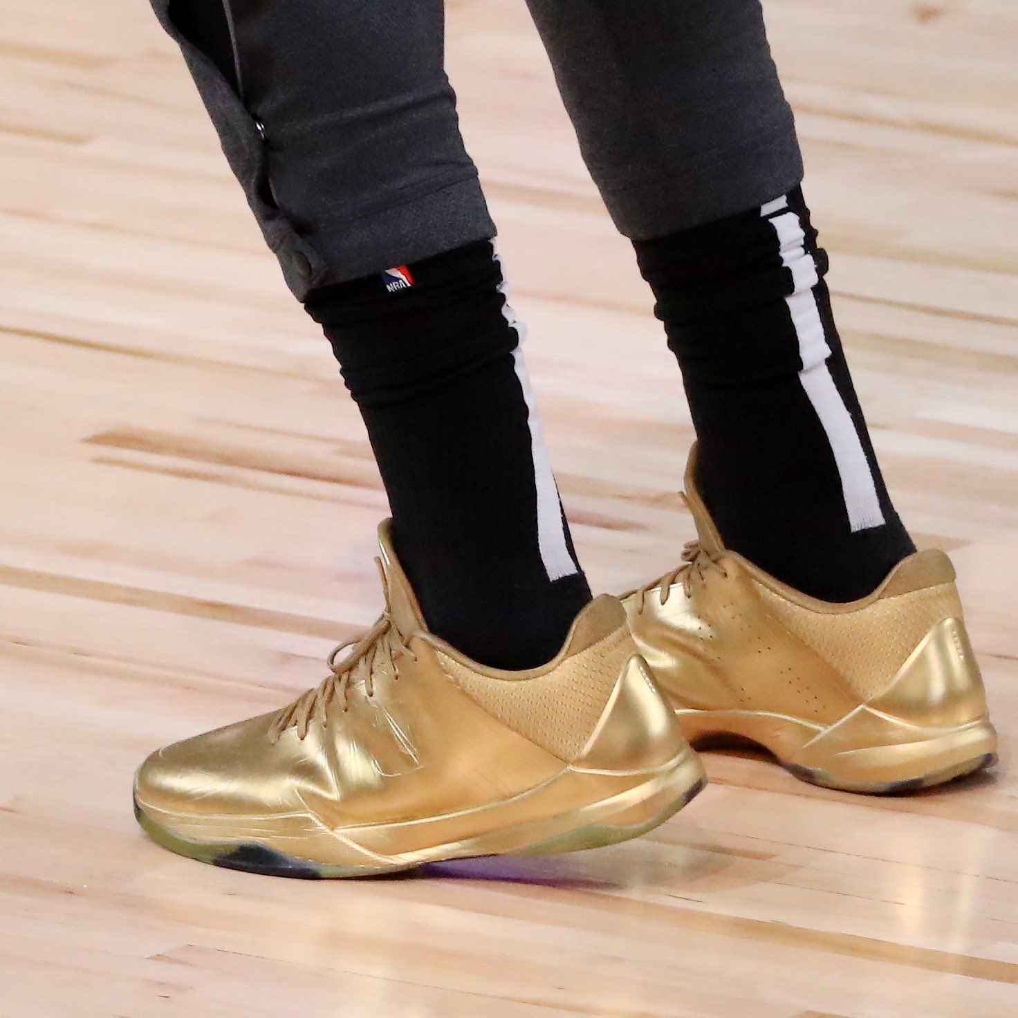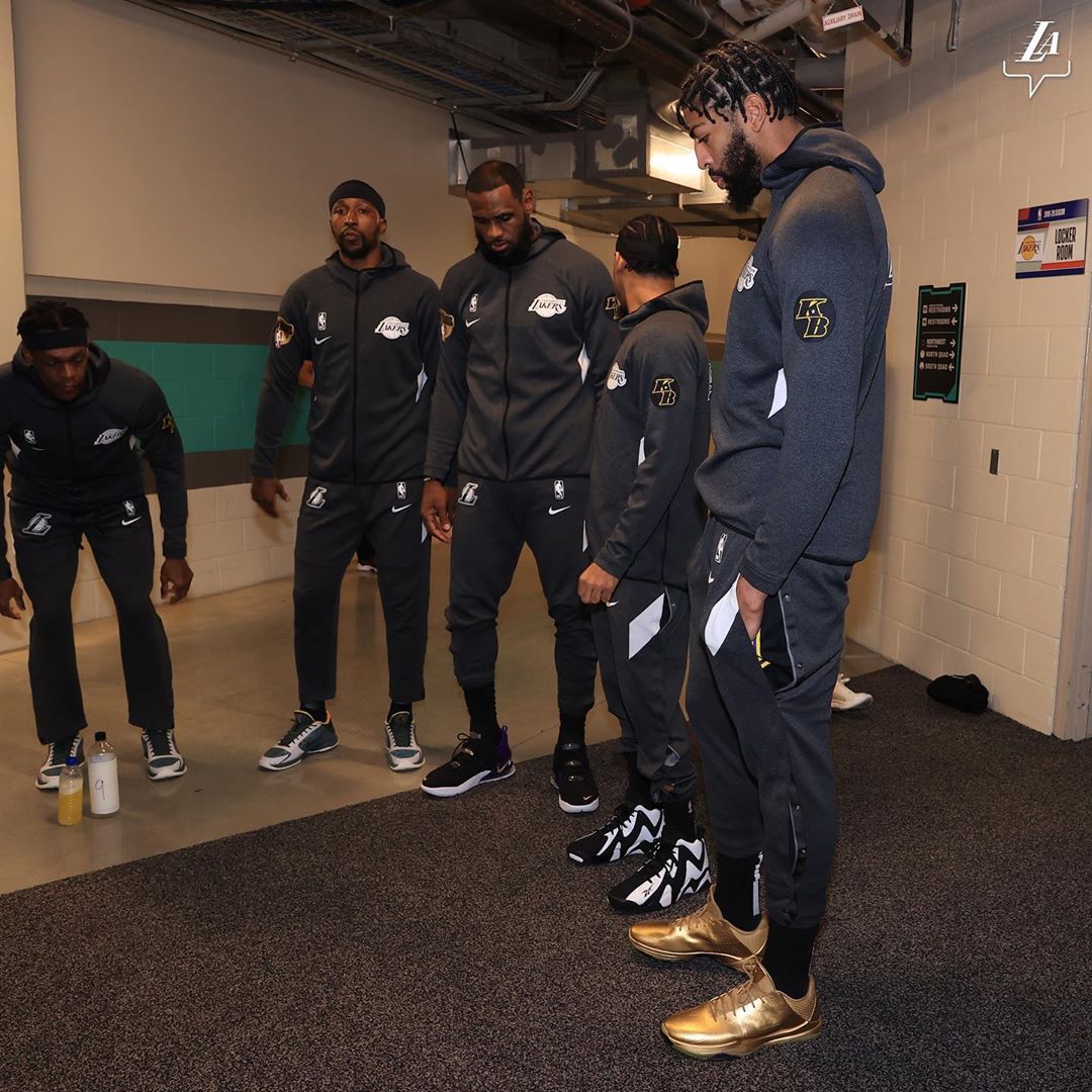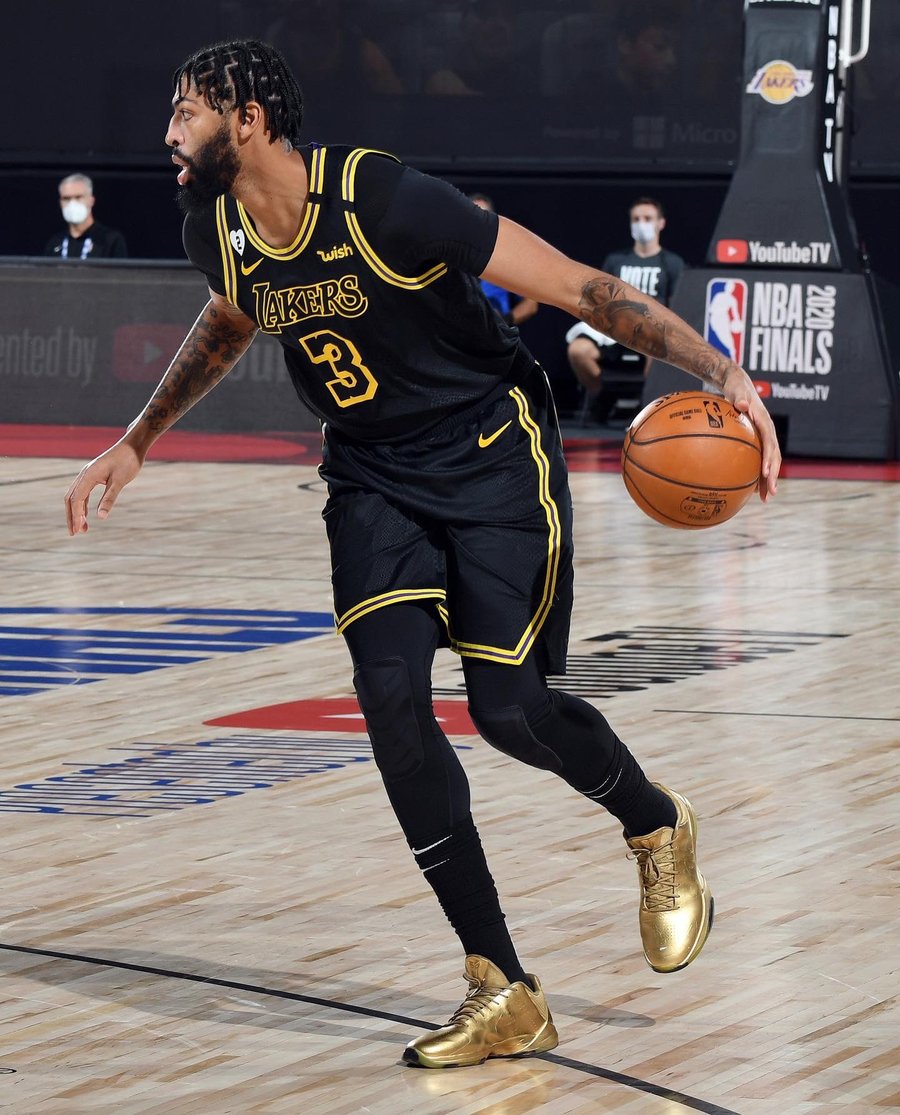 不过今天的球星上脚可以说惊喜不断,尤其是浓眉脚上的那双纯金配色 Nike Kobe 5 Protro,彰显出十足华丽的气质。