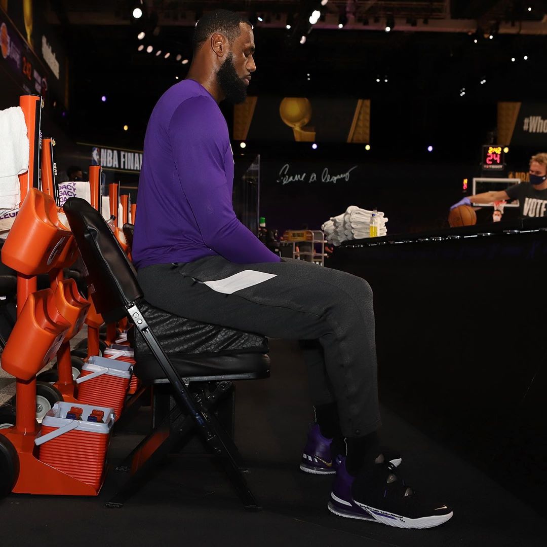詹姆斯也在赛前热身时上脚 Nike LeBron 7,正式比赛之后换上刚刚发售的 Nike LeBron 18。