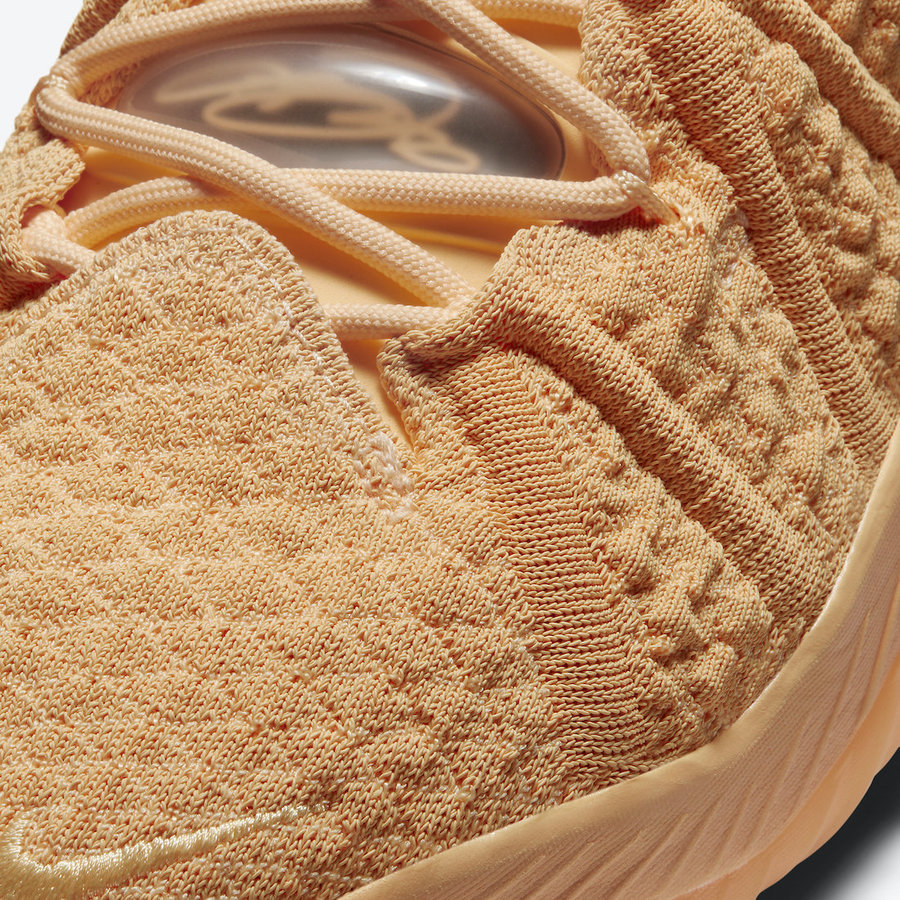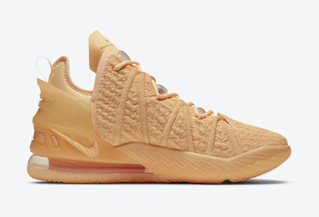 这双 LeBron 18 应该是全新 “Sisterhood” 系列中的一员,整双鞋全部采用亮橙色覆盖鞋面与中底,后跟的半透明 TPU 支撑和水晶外底在