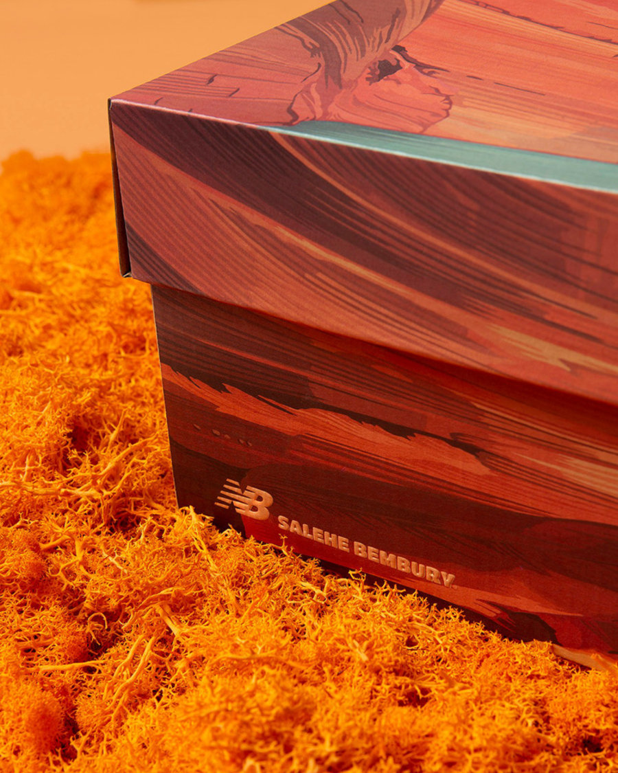 此外,New Balance 还使用水松木鞋垫及羚羊峡谷景观的鞋盒,可见对这双联名的细心和重视。