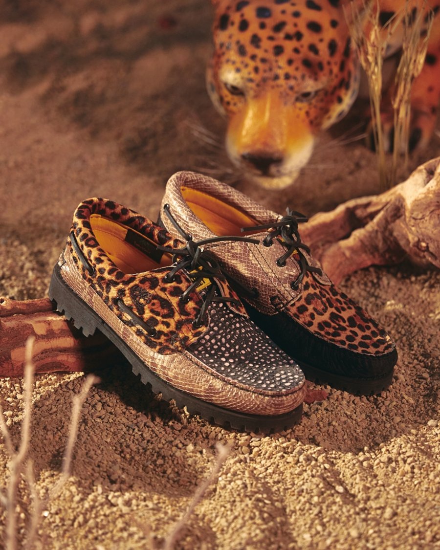 但此次联名系列是以三眼船鞋为蓝本,凭借野生动物的花纹,诠释此次设计理念。