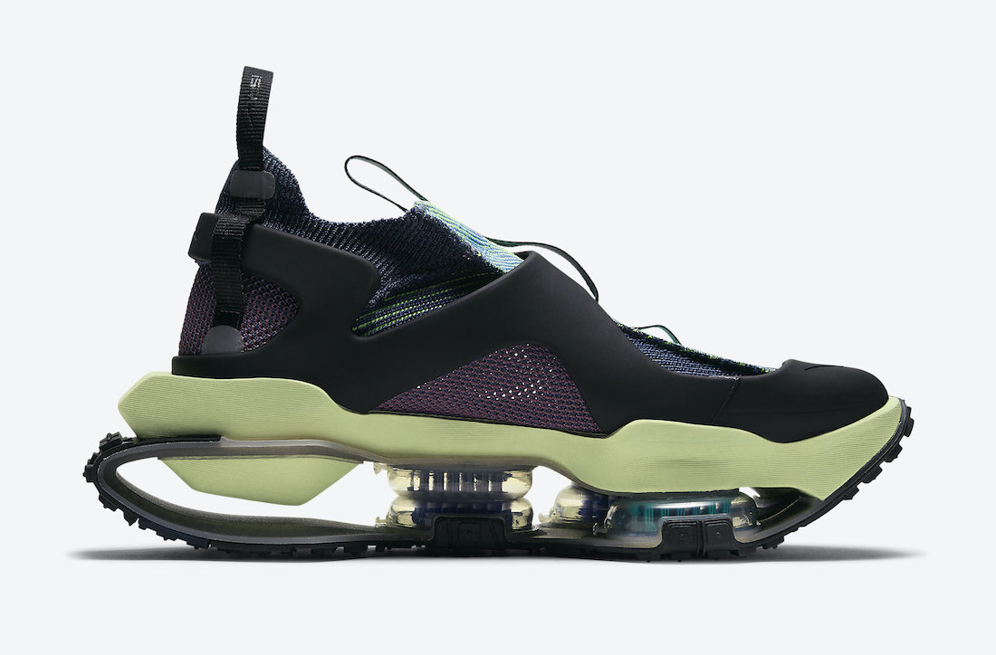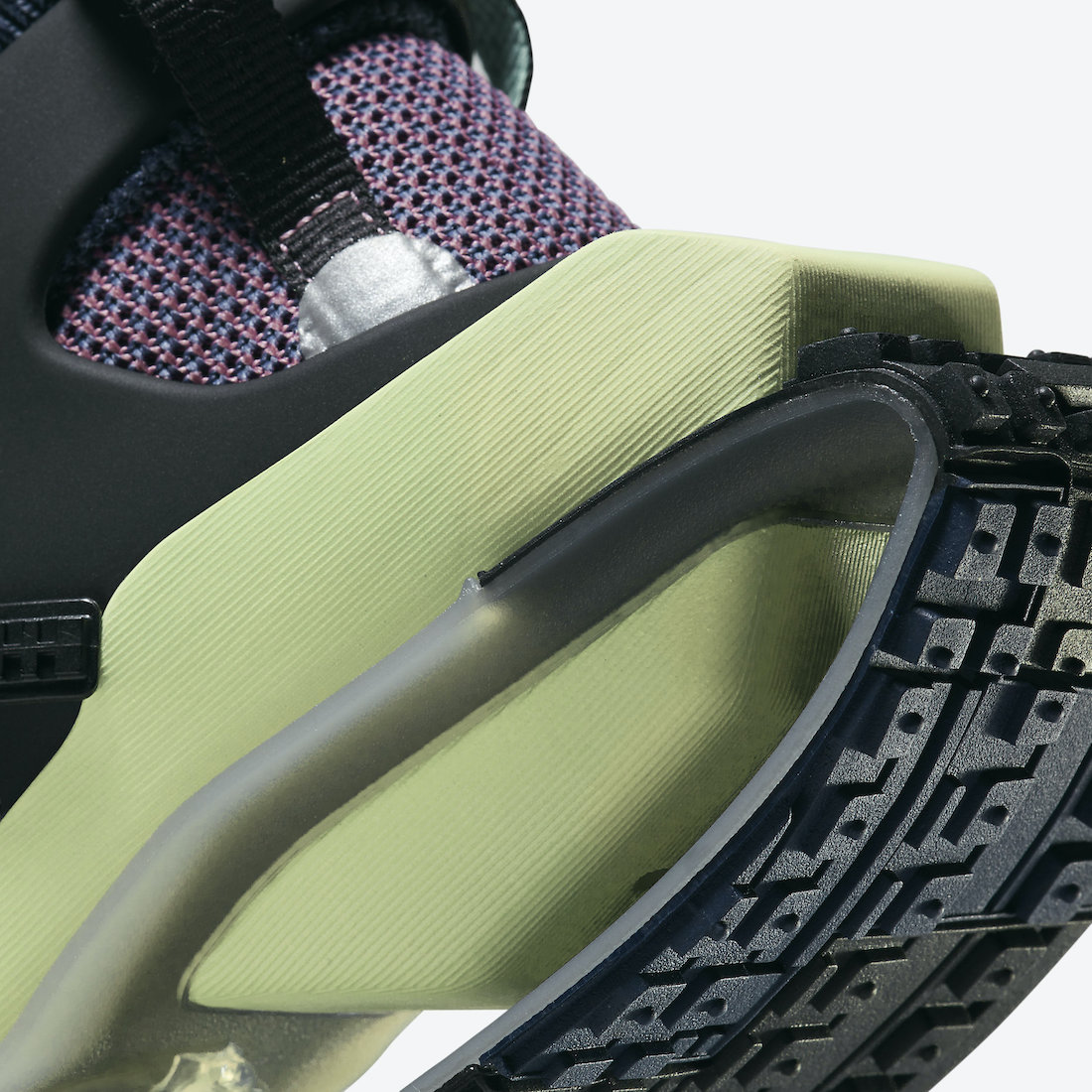 中底发泡部分则以荧光绿呈现,亮眼色调增添科幻气息,与这款鞋型的风格更加契合。