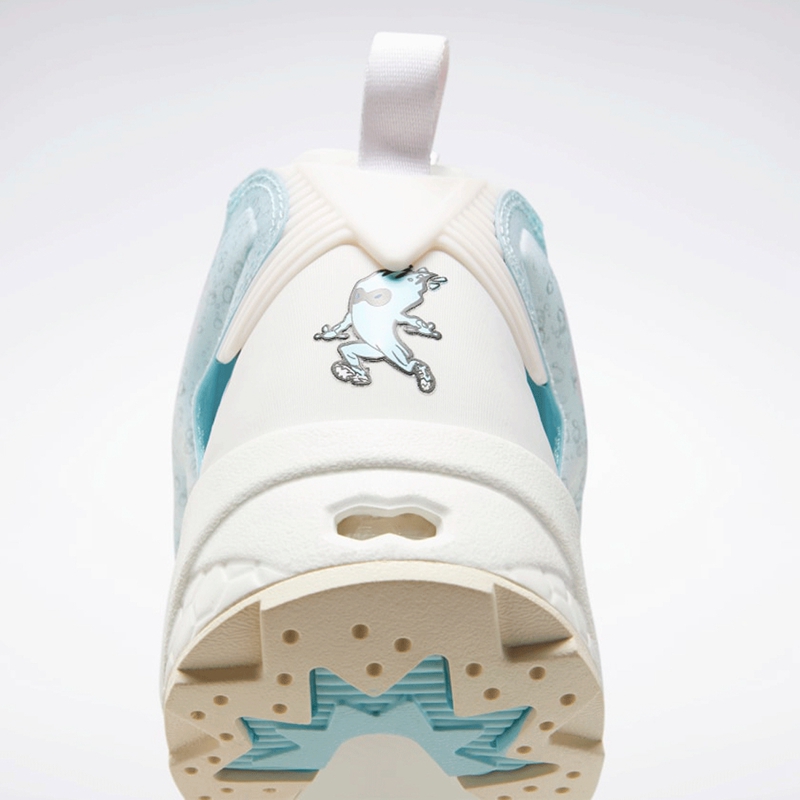 后跟处点缀拟人化液体角色,呼应整双鞋的配色。