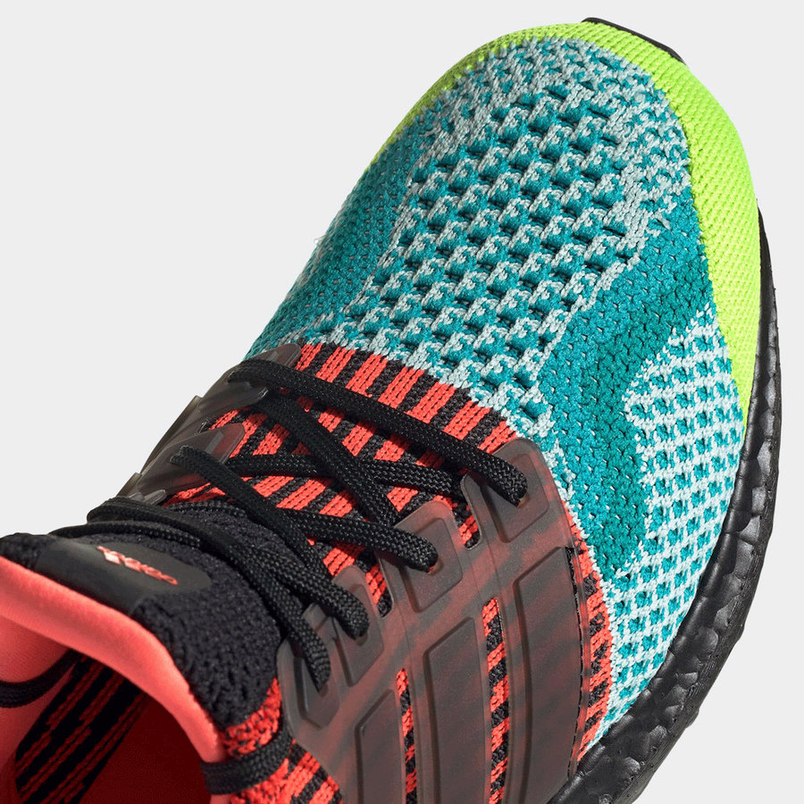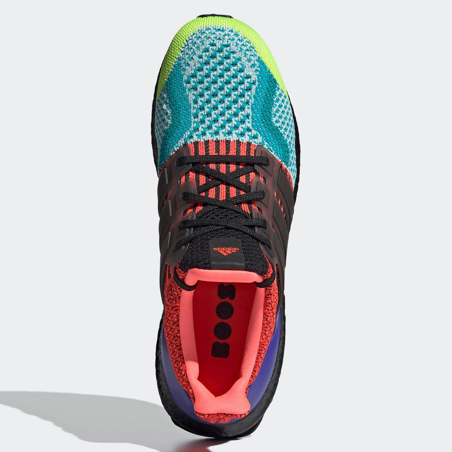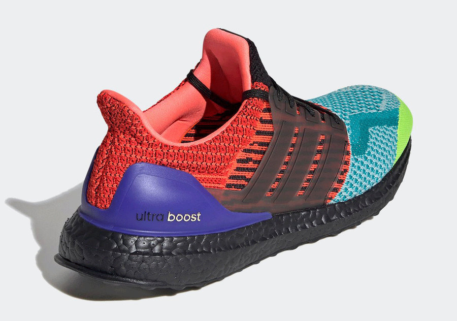 不同于一般的彩色设计,这款配色融合了历代 Ultra Boost 经典配色和细节设计。